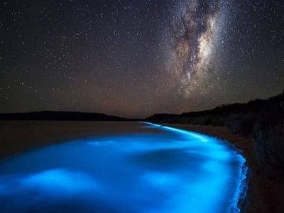Sumérgete en un espectáculo de luz natural donde el mar se enciende bajo las estrellas.